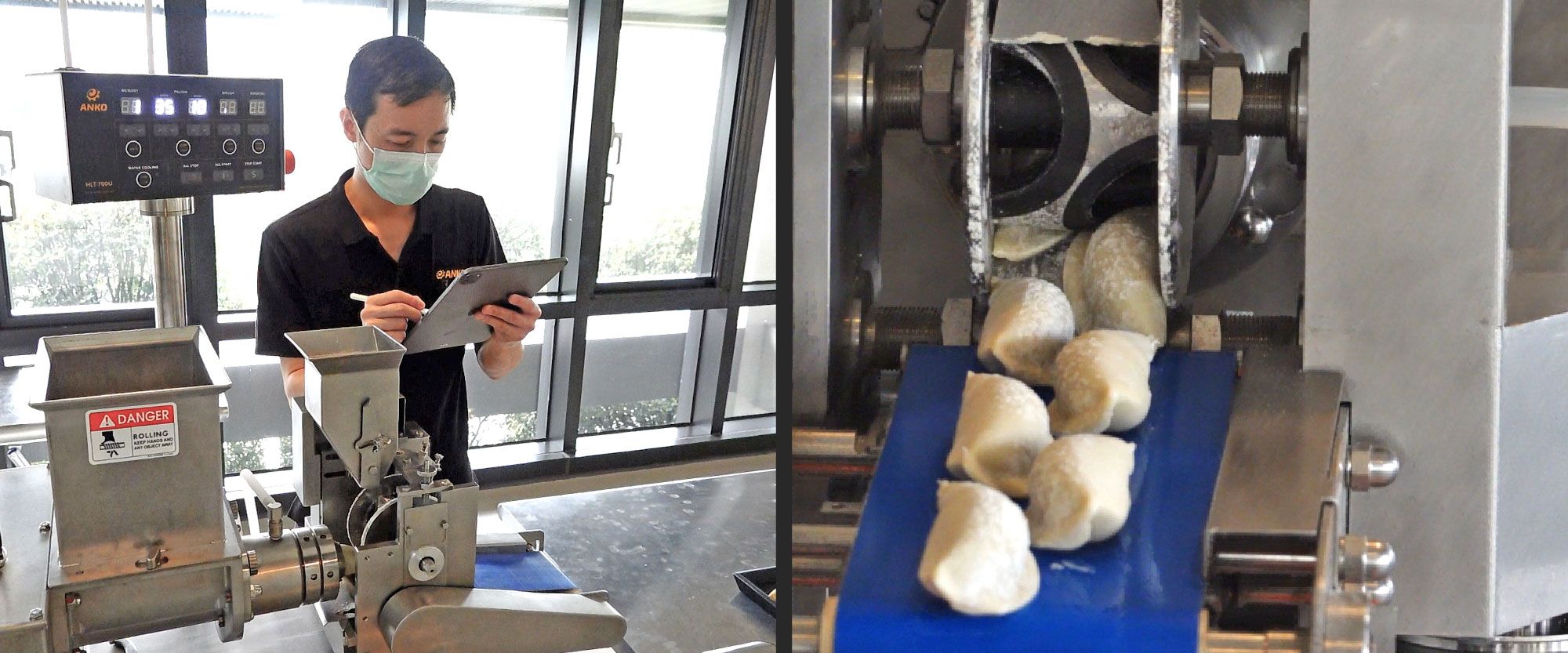 ANKO FOOD MACHINE je jednou z předních společností v oblasti potravinářského strojírenství na Tchaj-wanu, která disponuje výzkumným a vývojovým týmem a technologií výroby strojů. Poskytujeme přizpůsobené služby podle konkrétních požadavků našich klientů. Příkladem je "Sakura Dumpling" od ANKO, velmi oblíbený produkt této jara. Stroj využívá formovací formu k výrobě vizuálně atraktivních knedlíků ve tvaru sakury. ANKO’s HLT-700U Všestranný plnící a tvarovací stroj má vysokou kapacitu 12 000 kusů za hodinu; nejenže vypadají knedlíky ručně vyrobené, ale obaly mohou být tak tenké jako 1,2 mm a plnění může obsahovat kusy ingrediencí o velikosti až 10x10 mm. Tyto jemné knedlíky jsou vizuálně i chuťově uspokojivé. Kromě toho tato stroj může produkovat různé druhy knedlíků s různým původem, tvary a chuťovými profily pouhým výměnou tvarovací formy.