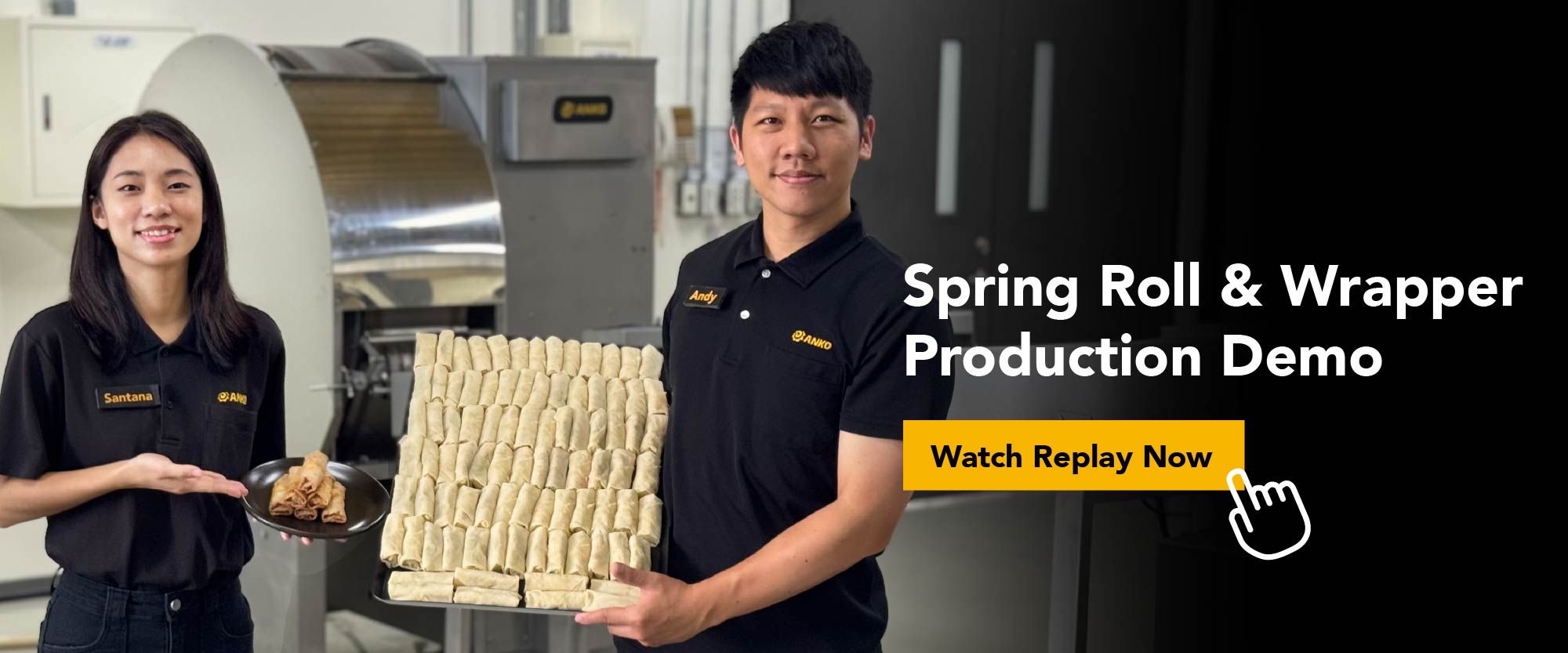 Fill out the form to access the replay link and discover how ANKO can help your business build a high-efficiency, fully automated spring roll production line.