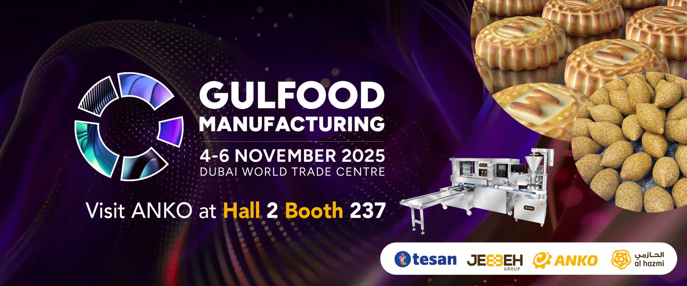 Visit ANKO at the 2025 Gulfood Manufacturing in Dubai. We will showcase three of our most popular machines among Middle Eastern food factories—the HLT-700U Multipurpose Filling and Forming Machine, SD-97W Automatic Encrusting and Forming Machine, and STA-360 Automatic Stamping and Aligning Machine, along with our Integrated Production Line, designed to help manufacturers achieve full-scale automation.