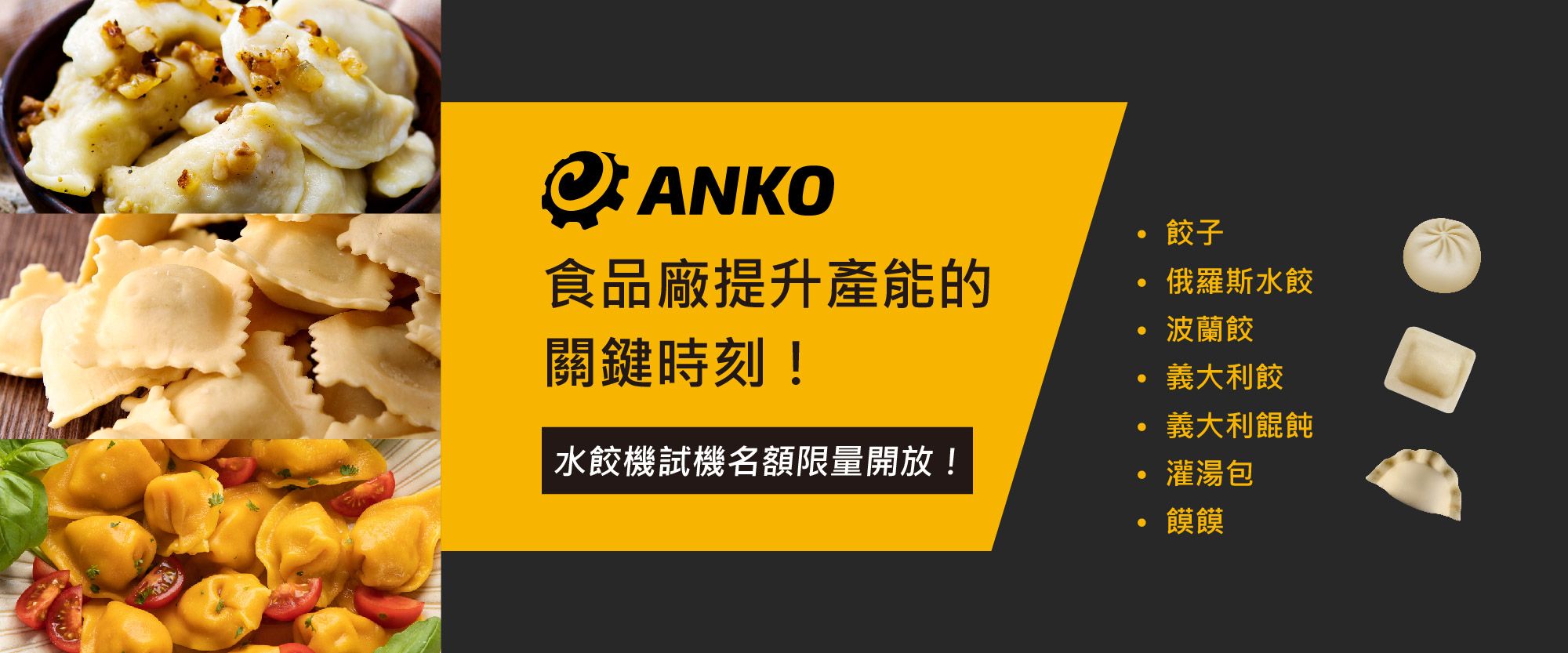 还在寻找高效自动化解决方案?立即报名HLT-700U 多功能充馅成型机线上试机活动!现场示范如何高速生产水饺、义大利饺,并透过快速更换模具制作波兰饺子、义式饺类,每小时最大产能12000 颗。可搭配EA-100KA 生产中式小笼包,每小时最大产能6000 颗。搭载IoT 物联网技术,产线状态随时掌握,智能监控,极速决策!抢先体验高效水饺机与大型产线的极致效能,立即填写表单,抢占试机席位!